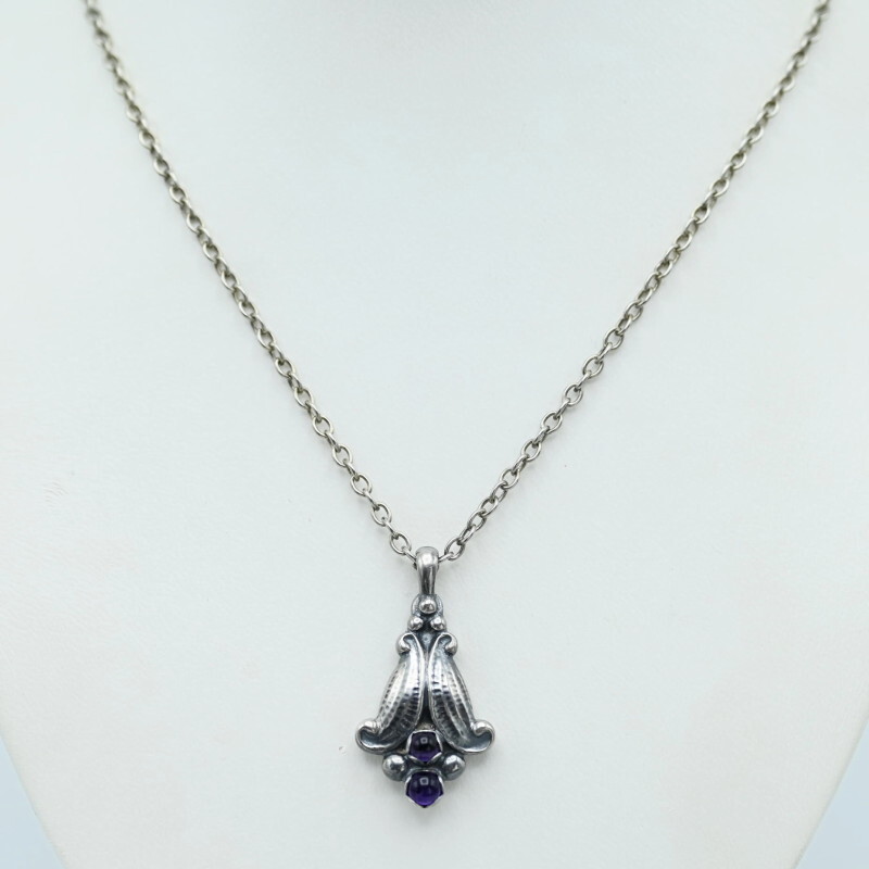 > K03-k020 GEORG JENSEN ジョージジェンセン 1993 アメジスト SV925 ロングチェーンネックレス シルバー/パープル
