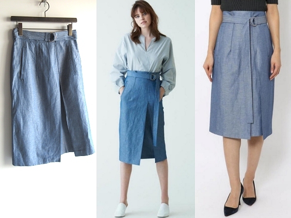 > 美品 DES PRES デプレ 2018SS ベルト付 コットンリネンツイル ハイウエストタックスカート 36 ライトインディゴ トゥモローランド
