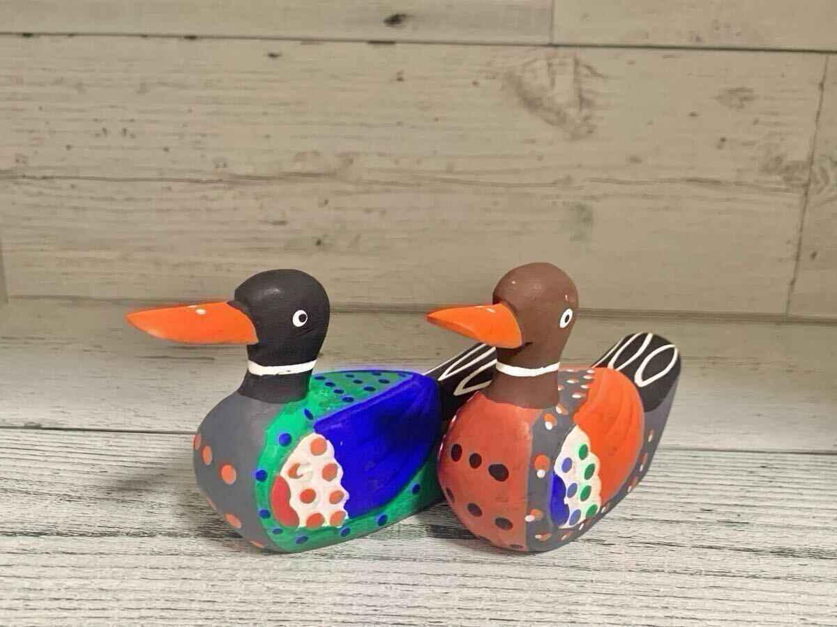 - おしどり 鳥 鴨 雁 置物 木彫り 韓国 キロギ かわいい オブジェ インテリア 飾り 郷土玩具 カラフル 夫婦 夫婦円満 つがい 民芸 工芸品