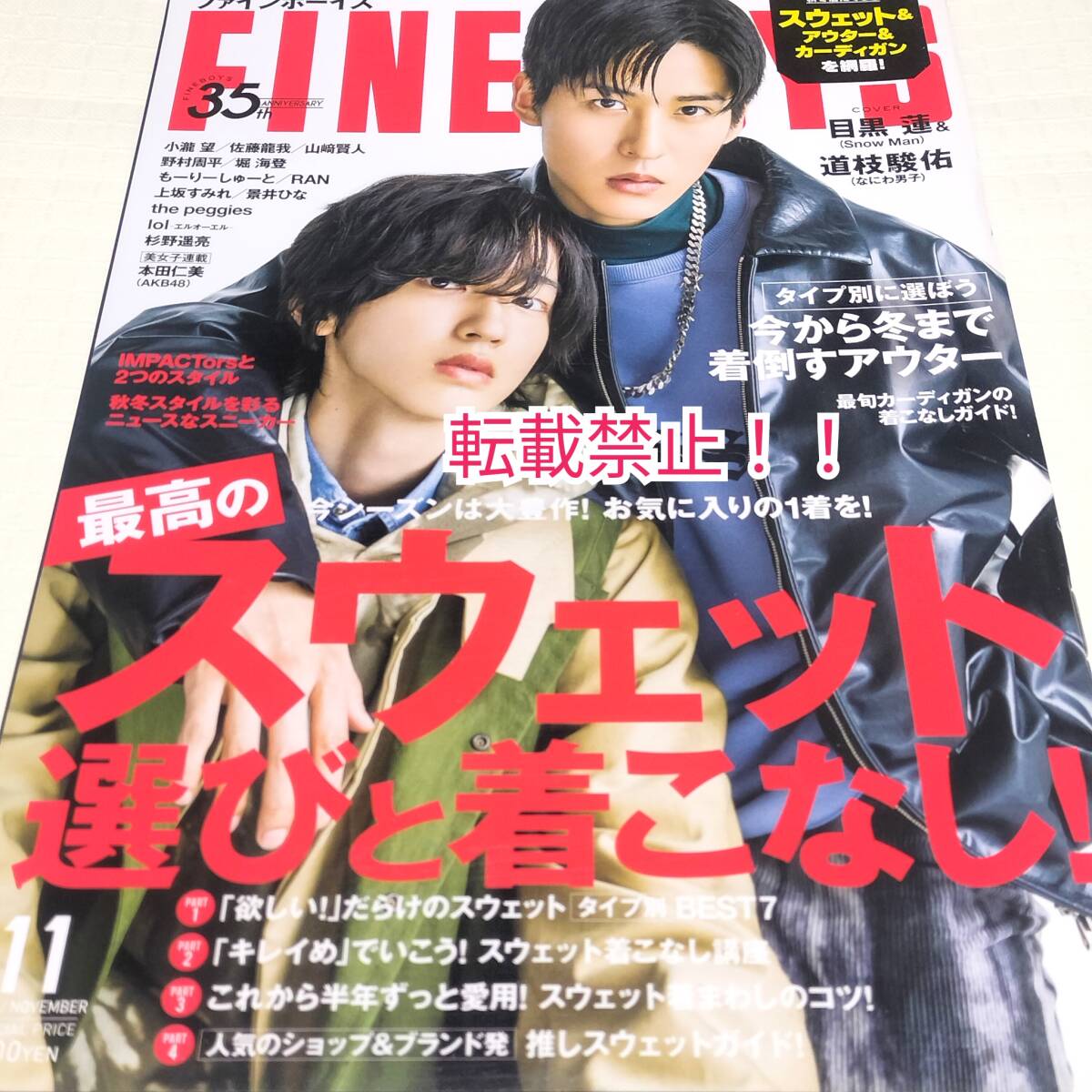 > FINEBOYS ファインボーイズ 2021年 11月号 目黒蓮 & 道枝駿佑☆最高のスウェット選びと着こなし!★