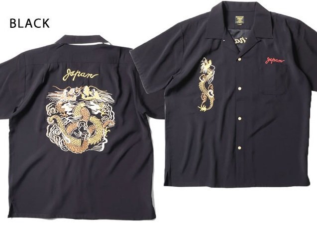 - スーベニアシャツ「TWIN DRAGON」◆HOUSTON ブラックXXLサイズ 41184 ヒューストン 和柄 双龍 竜 刺繍 スカシャツ