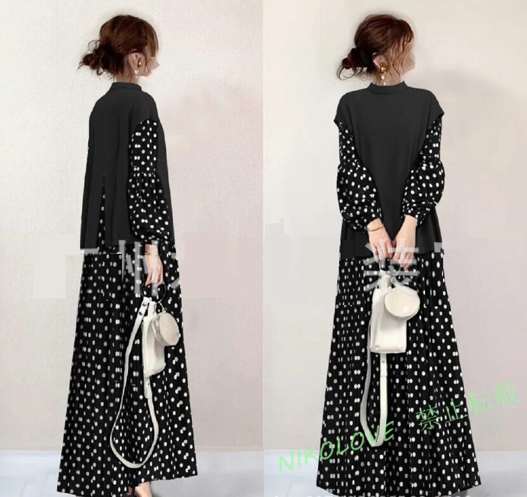 - ☆新品 ドットがかわいいワンピと黒のベストの2点セット★ ★大きいサイズもOKなフリーサイズ★セットアップかわいい! MK510