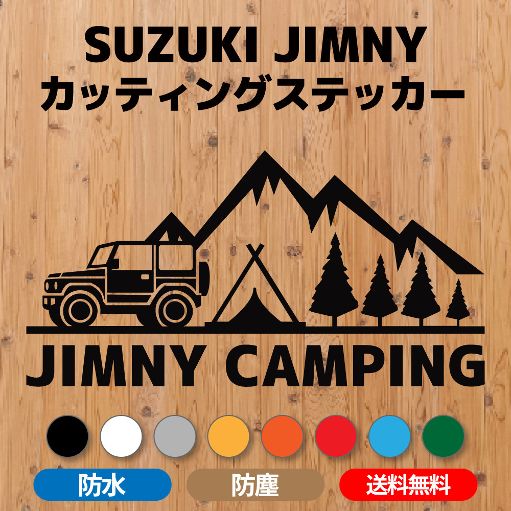 - 【ジムニー】カッティングステッカー「JIMNY CAPMING」ジムニーシルエット+山背景キャンプ [送料無料]