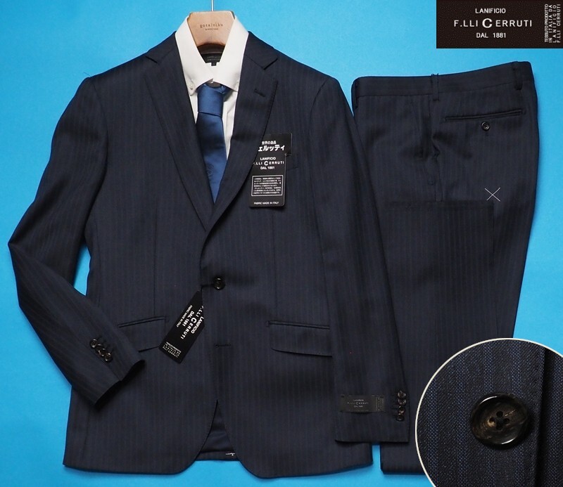 > 新品10.8万円 大手百貨店扱い 秋冬『CERRUTI チェルッティ 伊製生地』ウール100% ギャバジン ストライプ スーツYA7紺(B) 1004061
