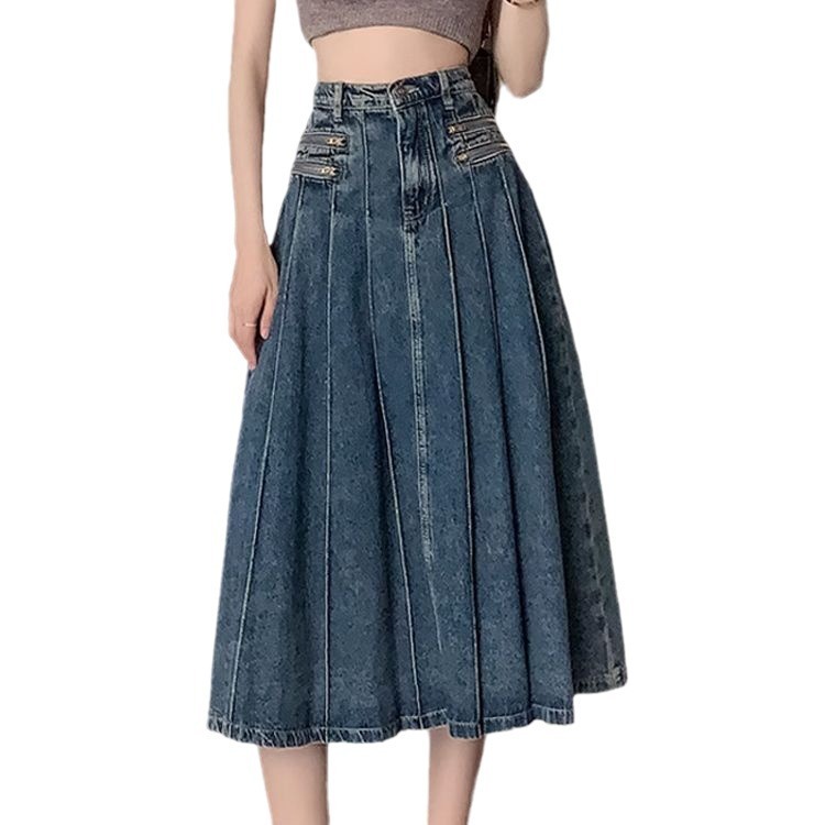 - 人気推薦膝丈スカート デニムスカート シンプル カジュアル かわいい 無地 S ブルー