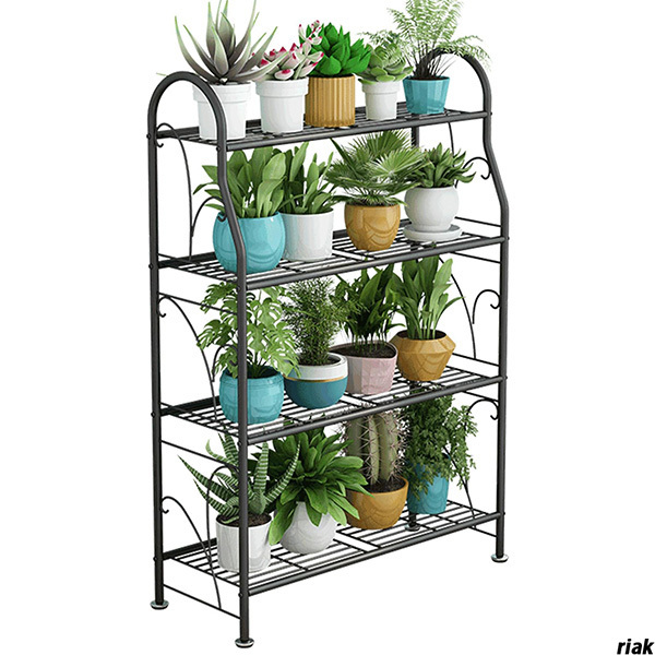- 【多機能で、花台だけでなく飾り棚や本棚、靴棚としても使用可能】ガーデンラック 4段 錬鉄製 バルコニー リビングルーム 階段 庭