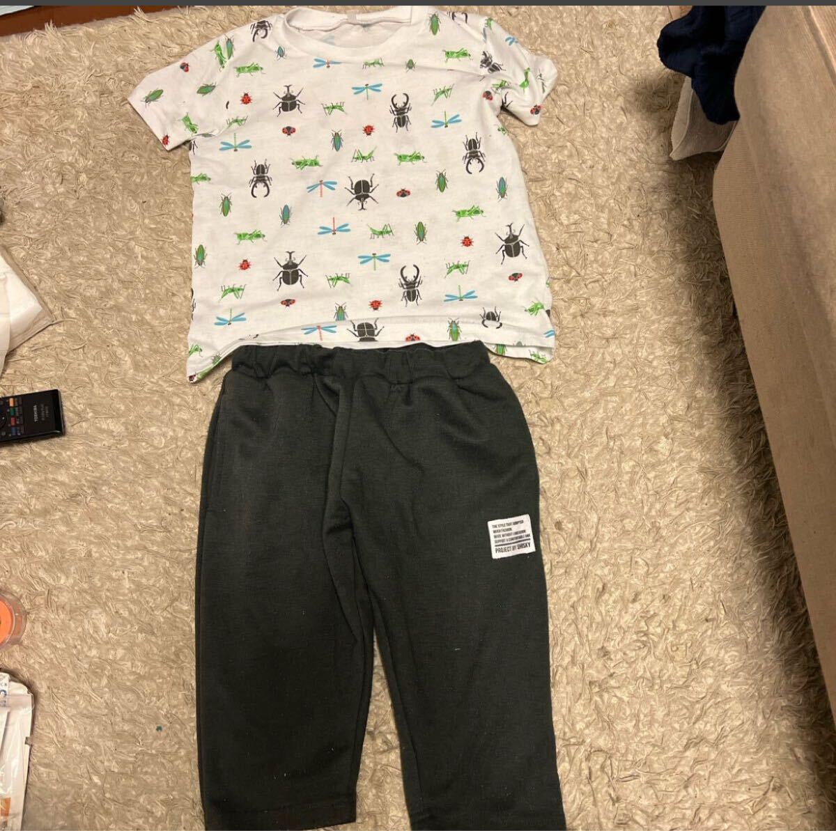 - 西松屋他、キッズ130 半袖昆虫プリントTシャツ、ハーフパンツセット
