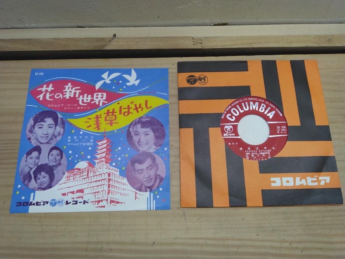 - U32◆希少7インチEP『花の新世界 / コロムビアローズ スリーキャッツ:浅草ばやし / 島倉千代子 神戸一郎 /Colombia 1959年 SA-298』250318