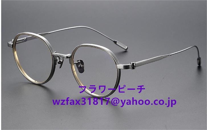 - ★高級メガネ★フルリムメガネ メガネフレーム 金属 チタン レンズ交換可能 伊達メガネ 男女兼用 丸メガネ