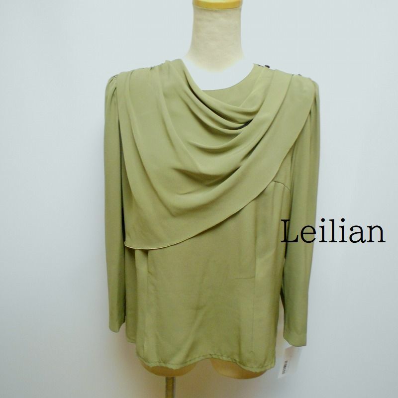 > 936431 Leilian レリアン カーキ系 長袖 シャツ ブラウス 9【クリックポスト可】