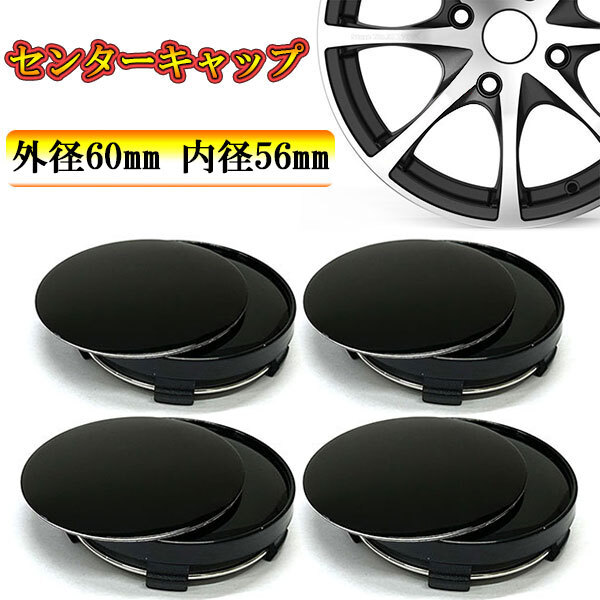 > 車 ホイール センターキャップ ハブキャップ ホイールキャップ 外径 60mm 内径 56mm DIY 汎用 A ブラック×ブラック 送料無料