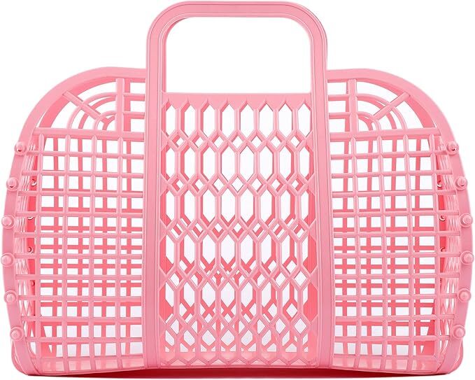 - [BABANA] ジェリーバッグ - 繰り返し使えるバスケット ビーチバッグ レトロ ジェリーハンドバッグ メッシュバスケット ペールピンク