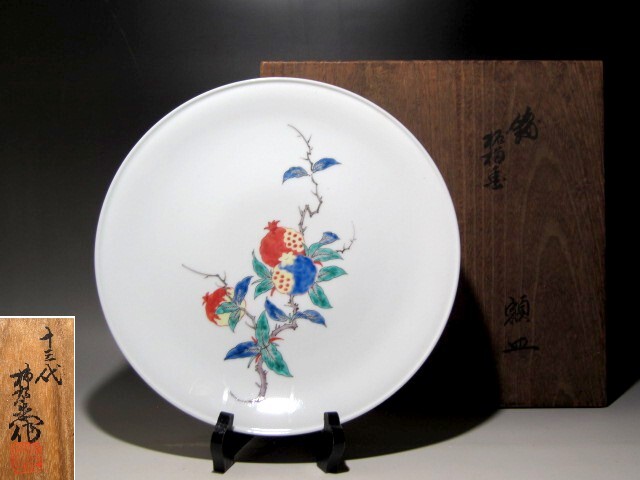 - 十三代酒井田柿右衛門 錦柘榴画 額皿 美しい作品☆z228