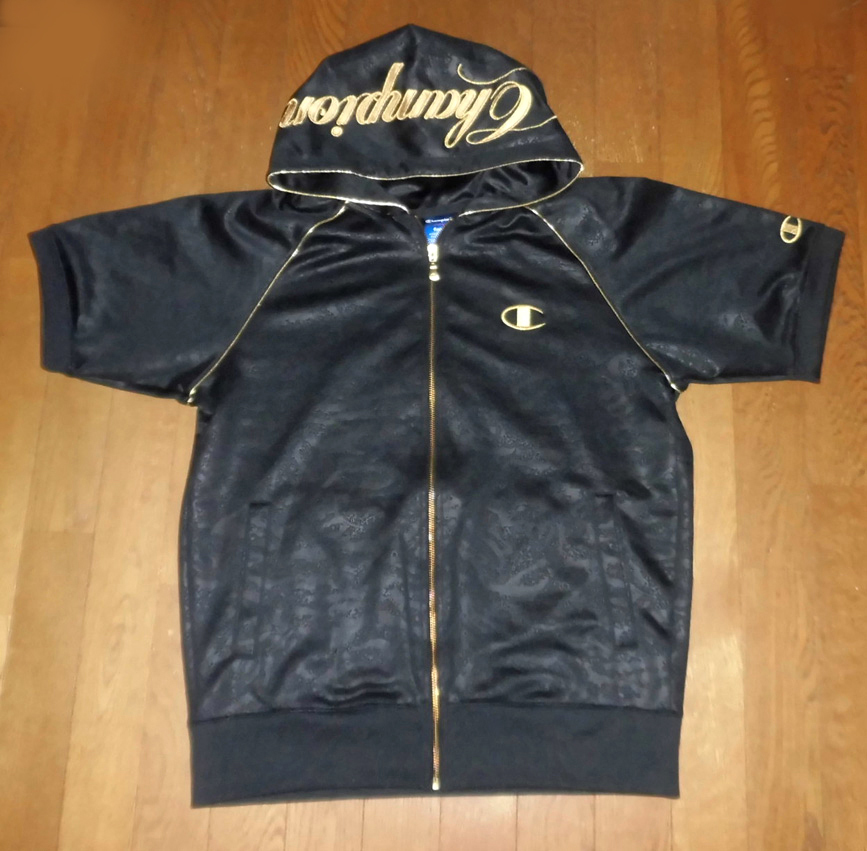 - Champion チャンピオン S-MODE 魔裟斗 ウォームアップ 半袖 フードジャケット 定7590円 黒黒金アニマル S USED 美品/K-1ライジン格闘技