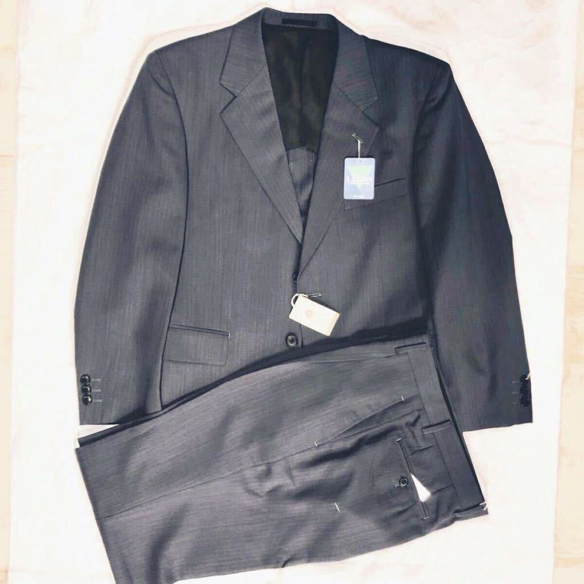 - 新品 未使用 MIYUKI ミユキ 2つボタンスーツ 春夏 A4 背抜き タグ付き センターベント ダーク グレー ストライプ メンズ 312079