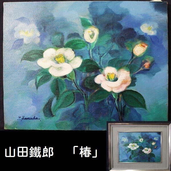 - 【真作】 山田鐵郎 「椿」 油彩6号 サロン・ド・パリ会員 元陽展内閣総理大臣賞受賞 D737a