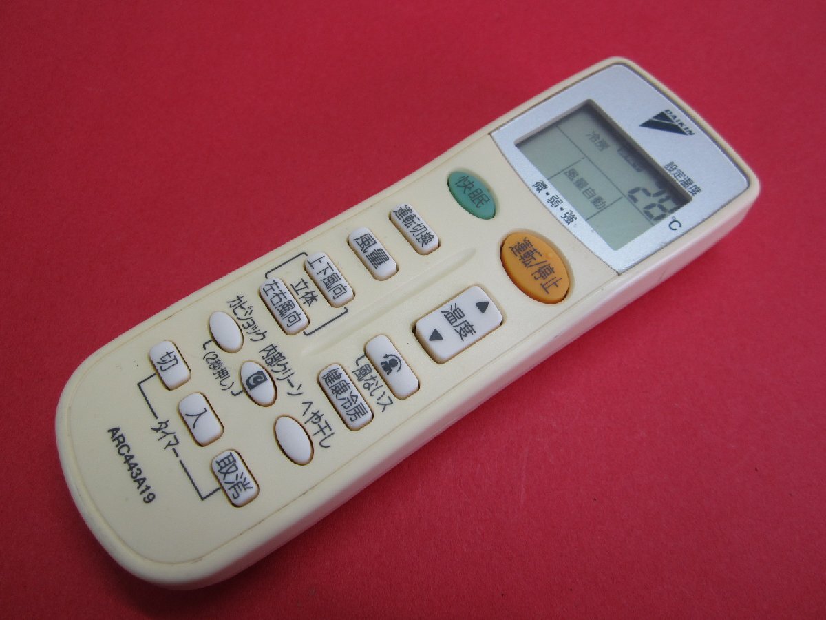 > HRY-3■ダイキン 保護フィルム付 色焼け有りますが、動作は大丈夫♪ エアコンリモコン ARC443A19 動作保証