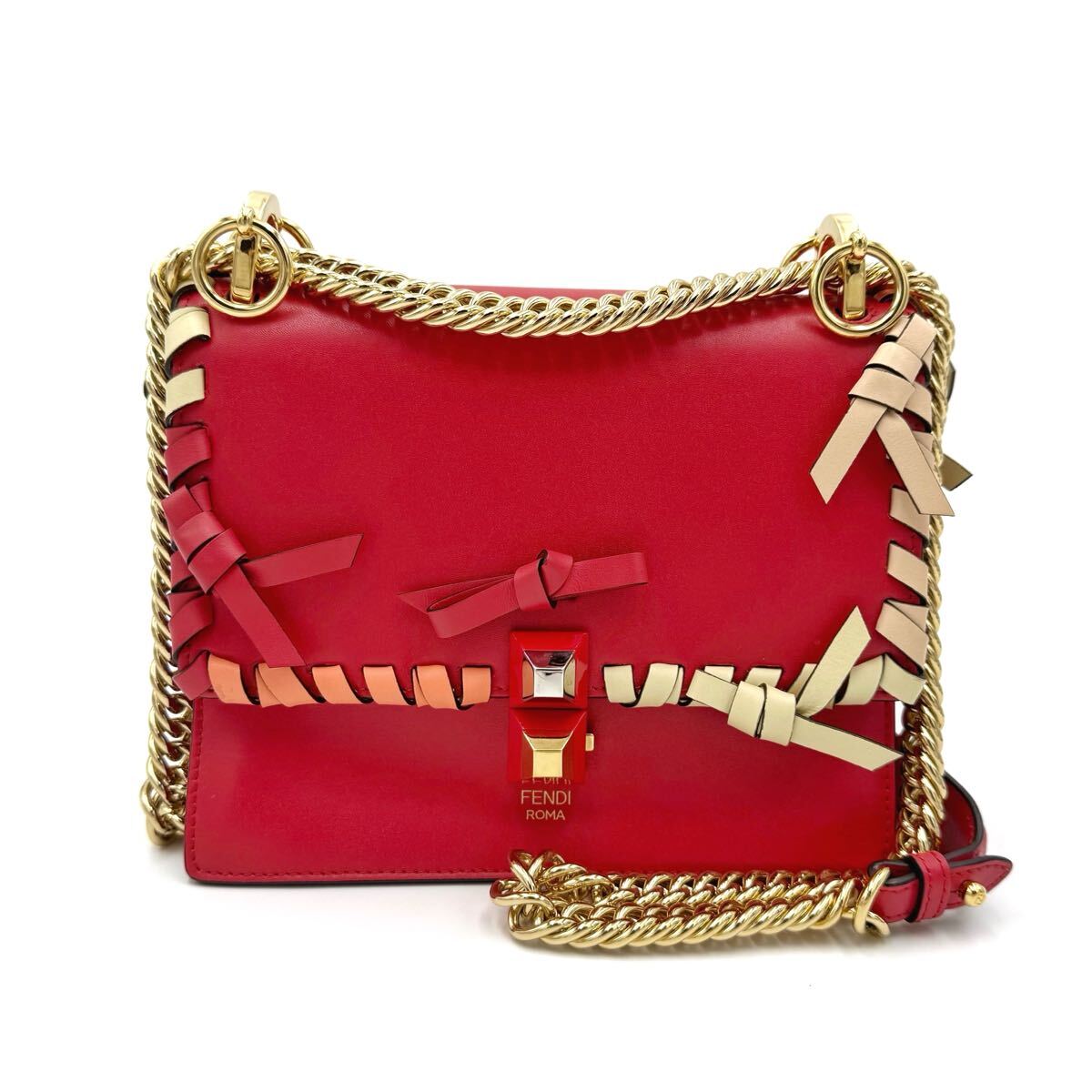 - フェンディ キャナイ ミニ チェーンショルダーバッグ 斜め掛け 肩掛け リボン