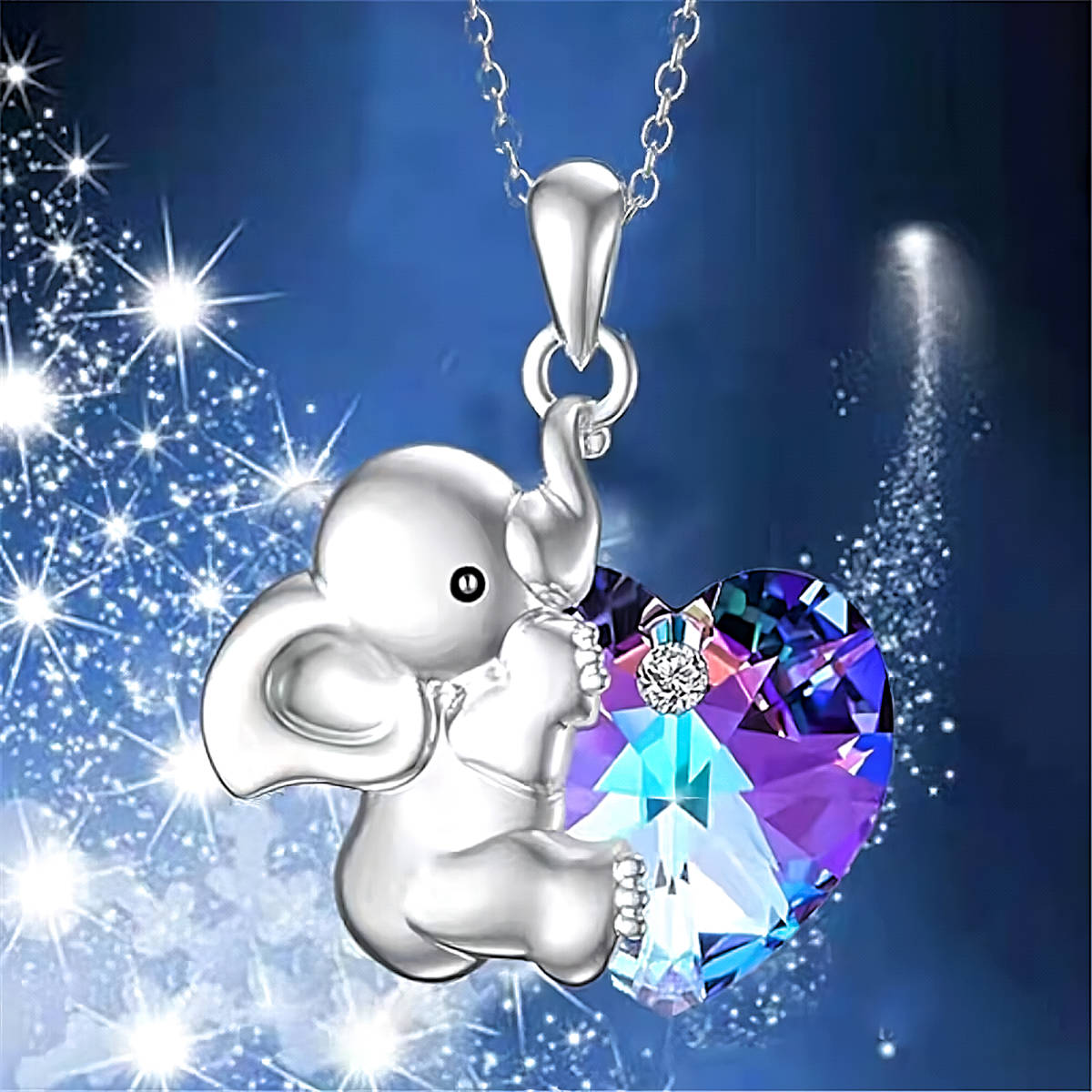 > 新品★送料無料★紫水晶ブルーハート薔薇象 ダイヤプラチナ仕上 925シルバーネックレス誕生日プレゼント旅行花見春連休ギフト国内発送