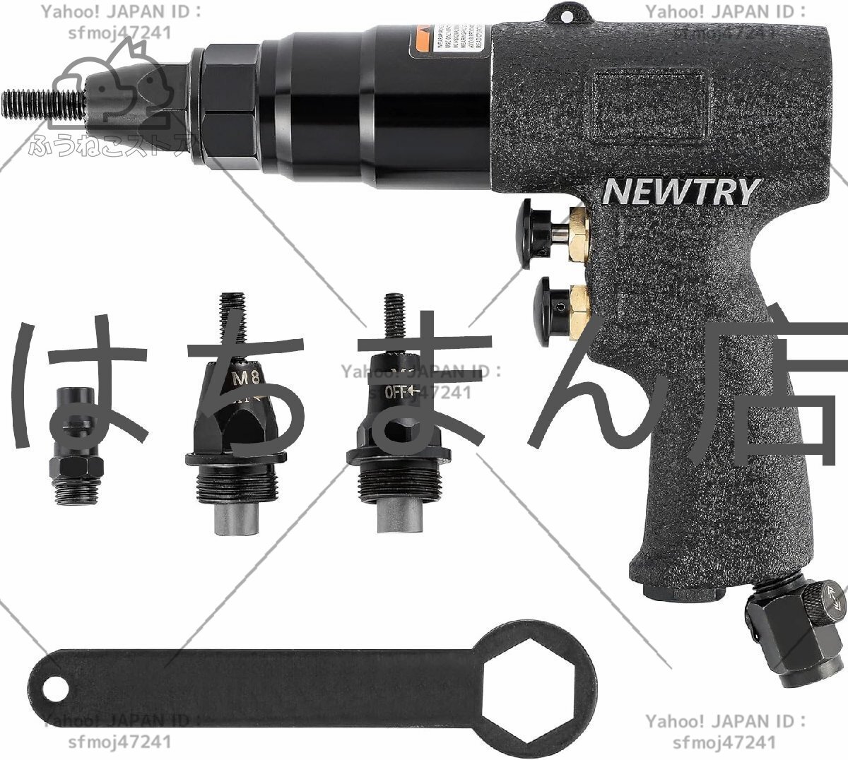 > 600rpm空気圧リベッター 空圧ナットガン ハンドリベッター エアープルリベットナットガン リベットツール 高速 手持ち(M5 M6 M8ノズル付き)