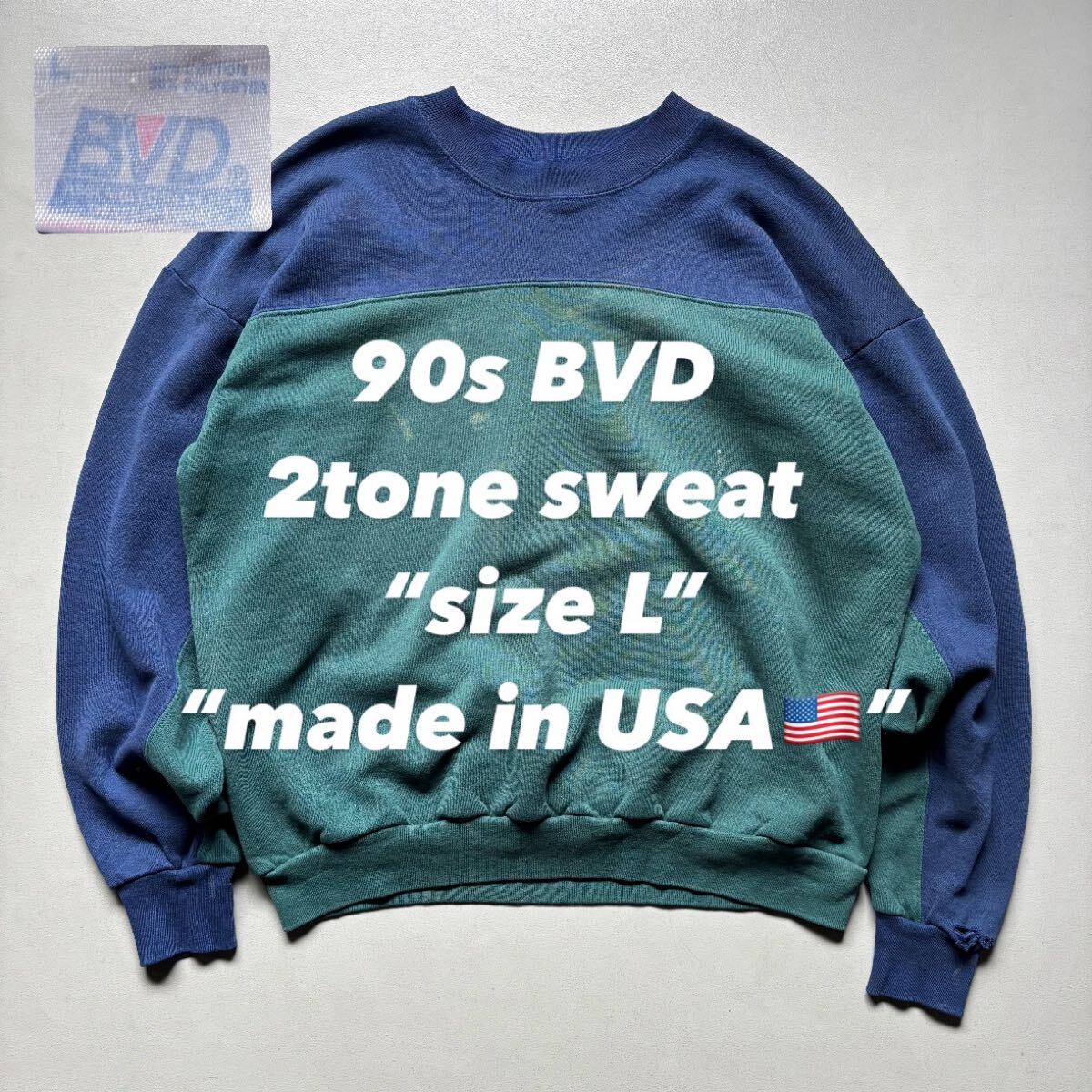 > 90s BVD 2tone sweat “size L” “made in USA” 90年代 ビーブイディー 2トーン 無地スウェット アメリカ製 USA製 トレーナー