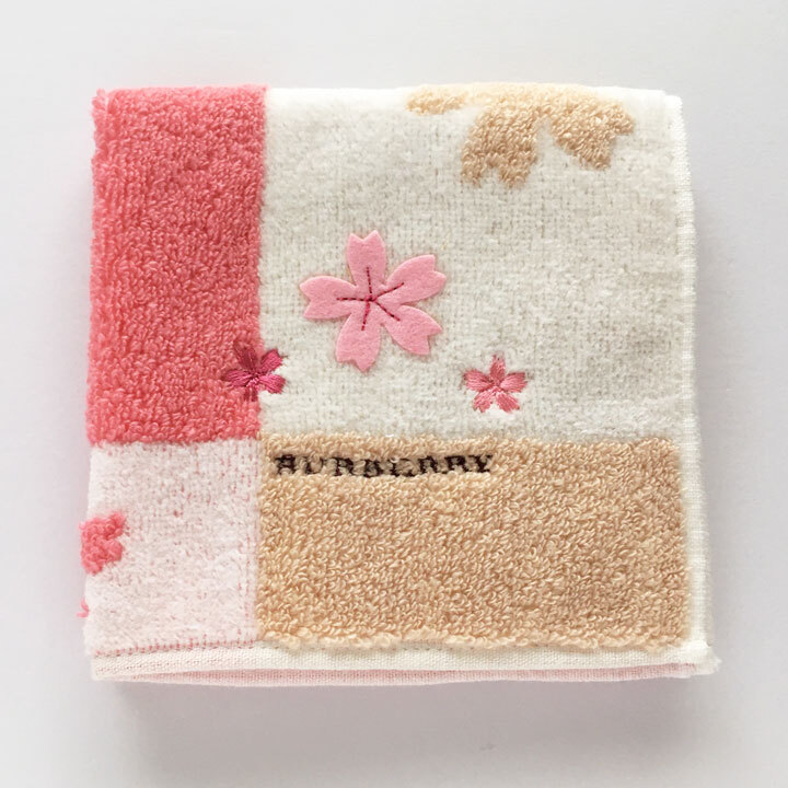 > バーバリー / BURBERRY タオルハンカチ 桜の花柄 刺繍&アップリケ付き ピンク/白/ベージュ【6324】