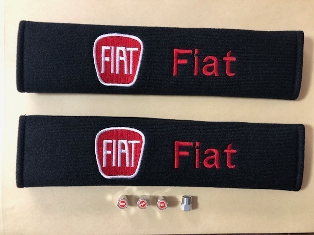 > 送料無料!かわいい! フィアット FIATロゴ シートベルトパッド&タイヤバルブキャップセット チンク パンダ 500