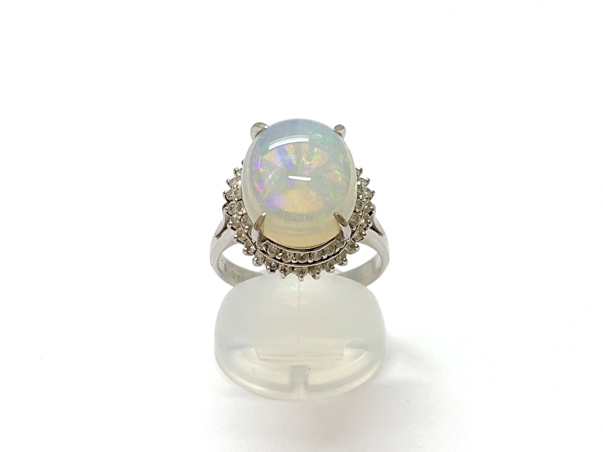> 【送料無料】Pt900 プラチナ ダイヤモンド ラウンド カット 0.71ct オパール 色石 宝石 ストーン 5.128ct リング 指輪 16.5号 店舗受取り可