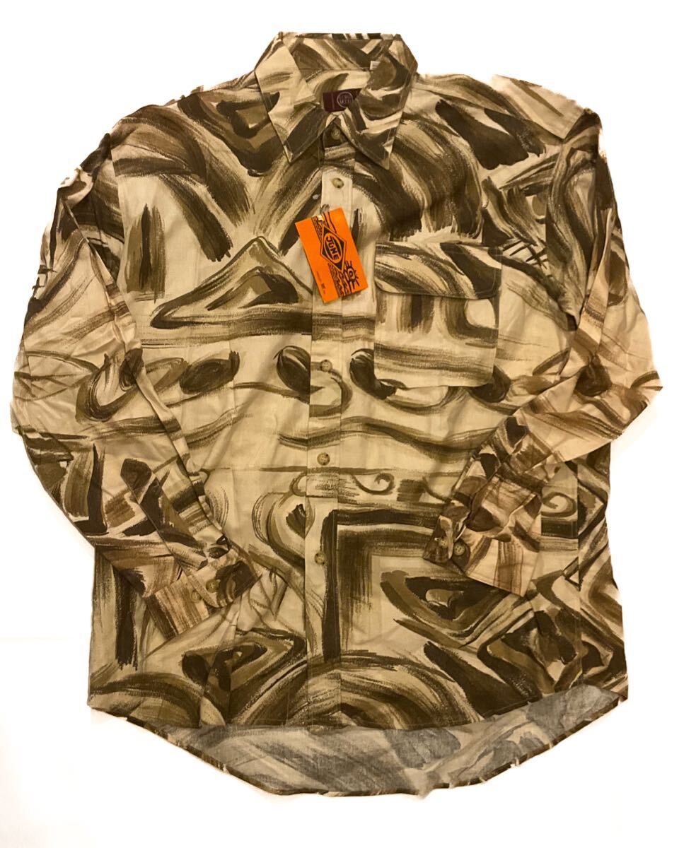 > 定価4900円 新品未使用品 ECRU MOON エクルムーン デッドストック トップス 長袖シャツ 総柄 長袖 シャツ Lサイズ
