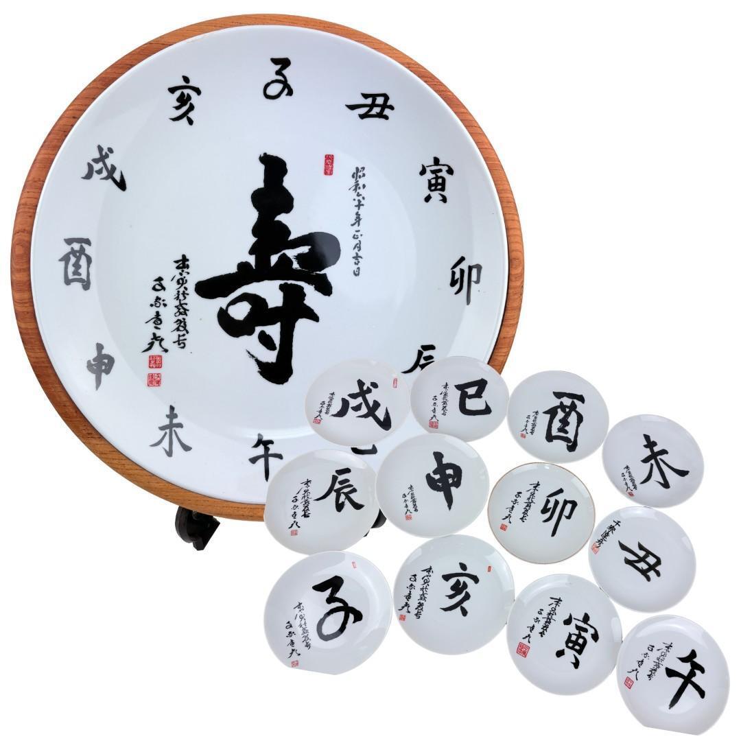 - 【送料込み】千家達彦 書 干支漢字入り 陶磁器皿セット 出雲大社 昭和60年 飾り皿 #674700