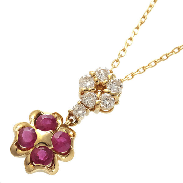 - 送料無料 本物 ルビーダイヤモンドネックレス K18YGイエローゴールド ルビー0.60 ダイヤ0.30 レディースペンダント お花デザイン おしゃれ