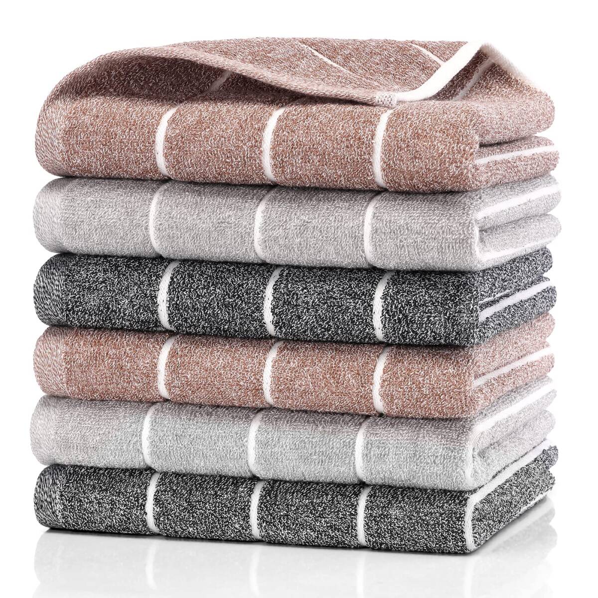 - 【在庫セール】タオル TMVOK おしゃれ 北欧風 綿100% 吸水速乾 6枚セット 35*75cm 抗菌防臭 大判 家庭用、ホテ