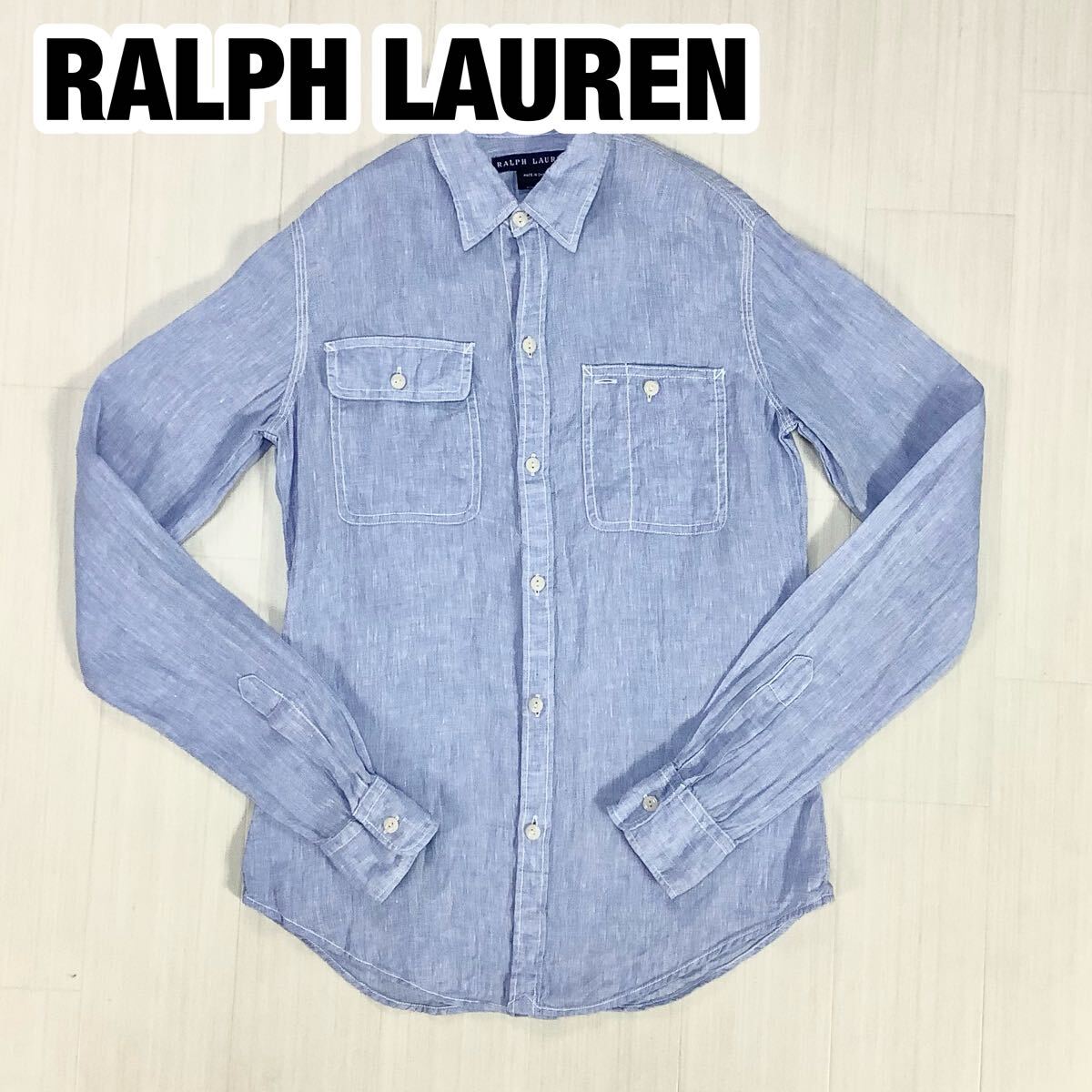 - RALPH LAUREN ラルフローレン 長袖 シャンブレー リネンシャツ レディース 2 ライトブルー