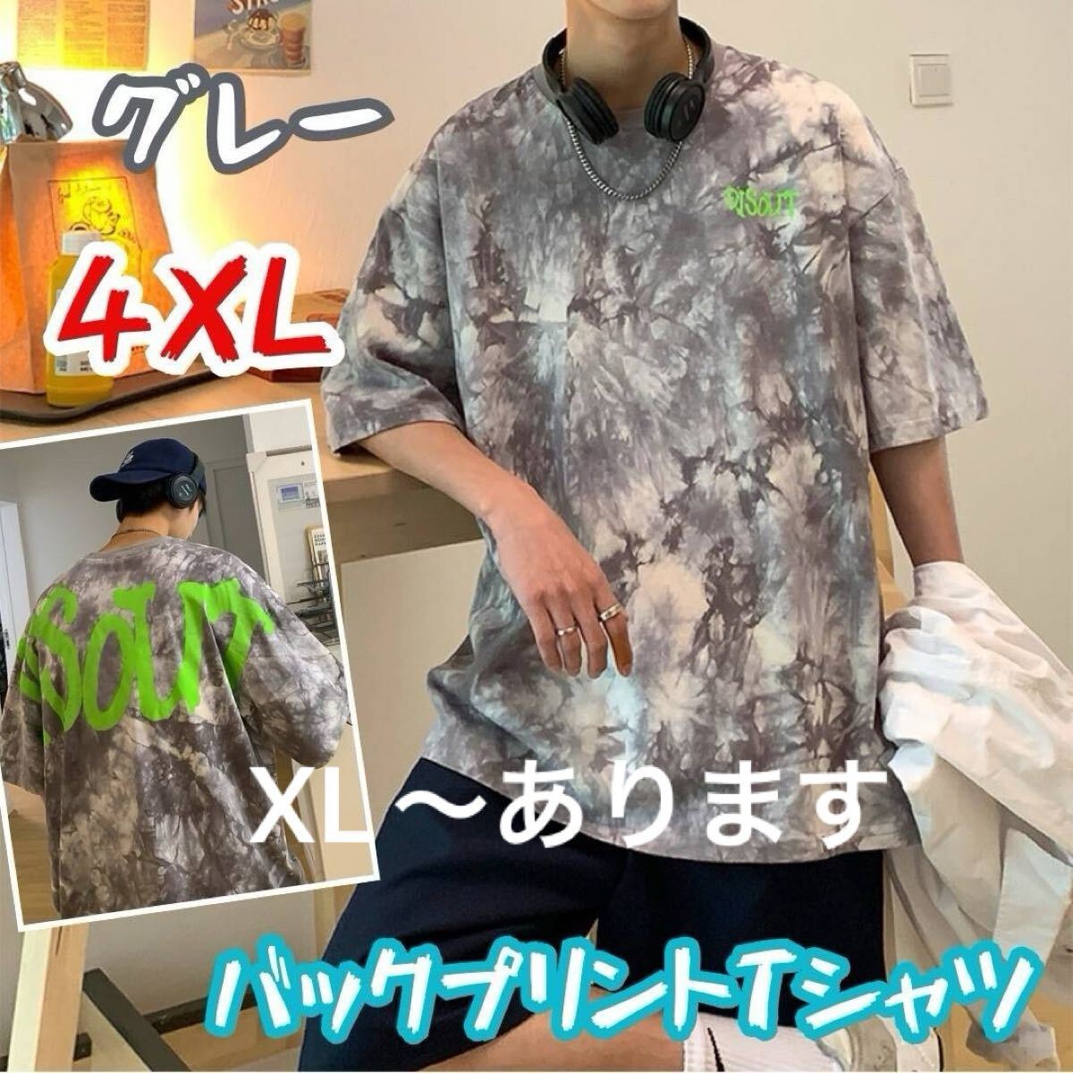 - .バックプリント Tシャツ グレー 4XL 派手 タイダイ柄 染め オーバーサイズ