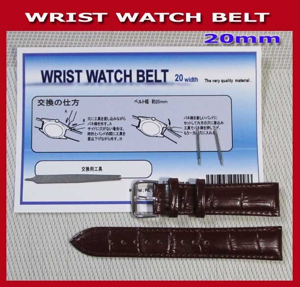 - ★★本牛革!腕時計ベルト&交換工具&バネ棒付き! 交換用ベルト/クロコ型/幅20mm新品即決!茶。ブラウン♪クロコ調!/本革