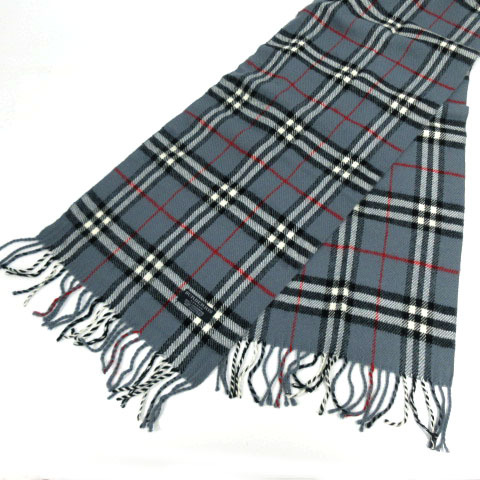 - バーバリー ロンドン BURBERRY LONDON マフラー フリンジ LAMBSWOOL イングランド製 ノバチェック グレー系 ブルーグレー 黒 白 赤