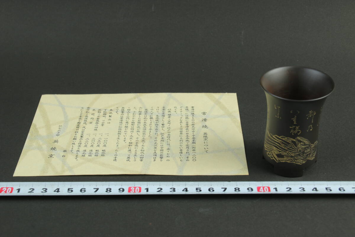 - 7003 新品未使用品 盆栽鉢 蘭鉢 黒泥 六歌仙 細字彫 色入 常滑焼 英焼窯 昭山 (師 初代常山 山田常山) 直径5.5cm 高さ7.5cm