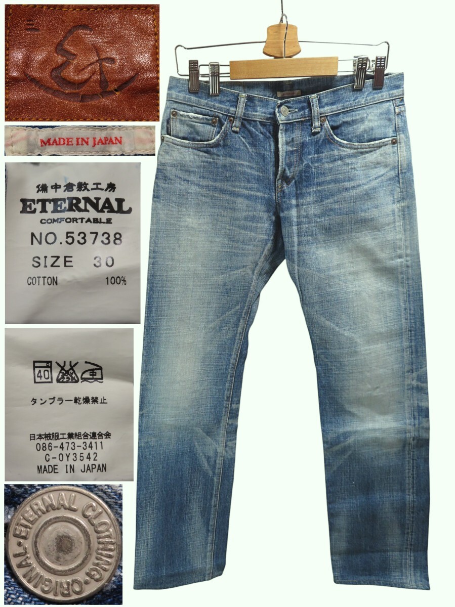 > ローライズ★W30(約80cm)【ETERNAL/エターナル】ヒゲ/ユーズド加工/53738/ボタンフライ/日本製/デニムパンツ/ジーンズ/色落ち/即戦力★