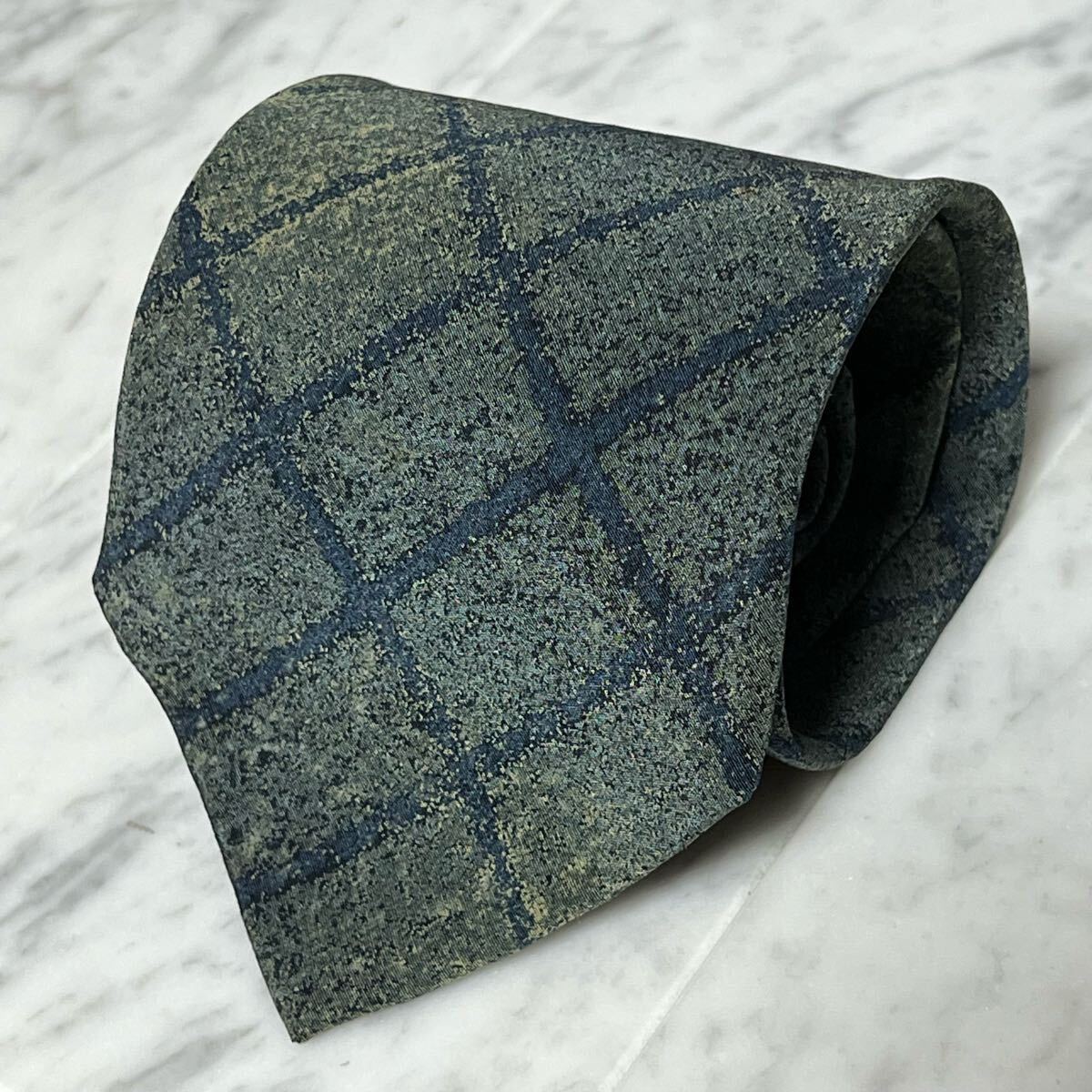- 999円~ ARMANI ネクタイ チェック柄 ネイビー カーキ グリーン系 (GREEN B6)