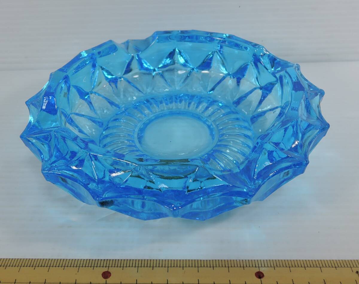 - ☆11K 昭和レトロ・ポップ■青色ガラス 灰皿■ブルーガラス