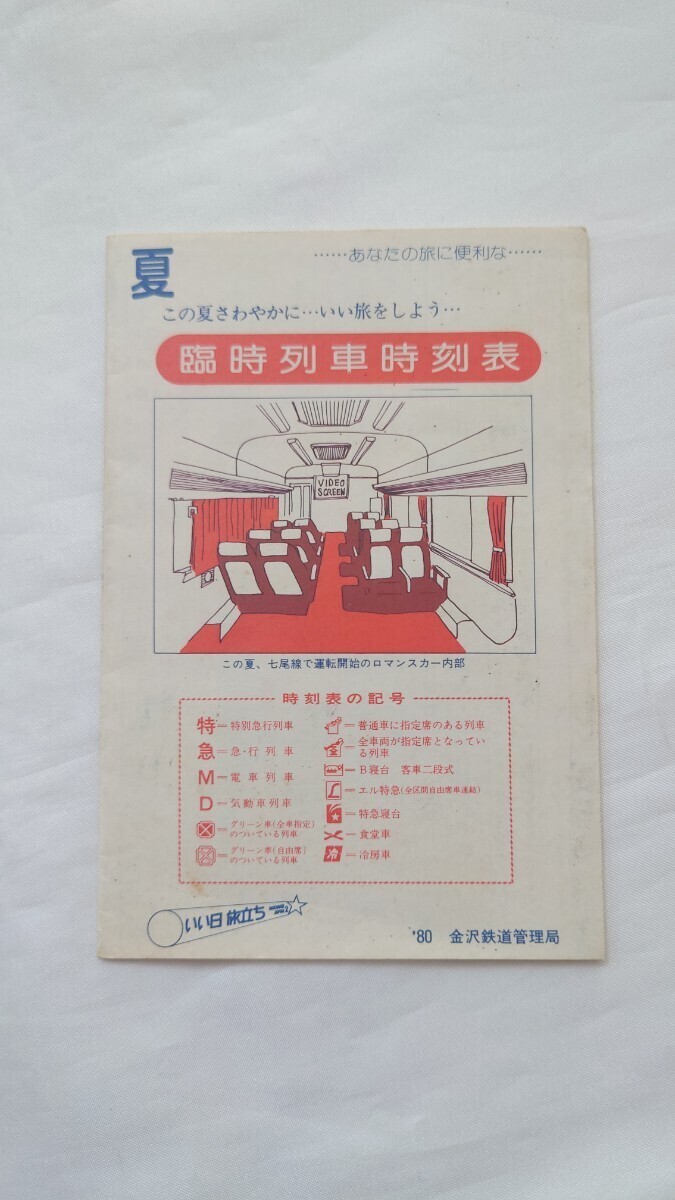 - ●国鉄金沢管理局●'80夏 臨時列車時刻表