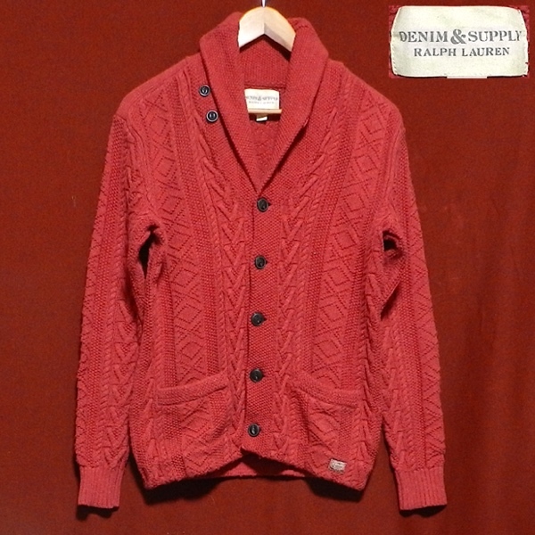 > DENIM & SUPPLY デニム&サプライ ラルフローレン ショールネック ショールカラー コットン ニット 赤グレー ネイティブ 柄編み XS 美品