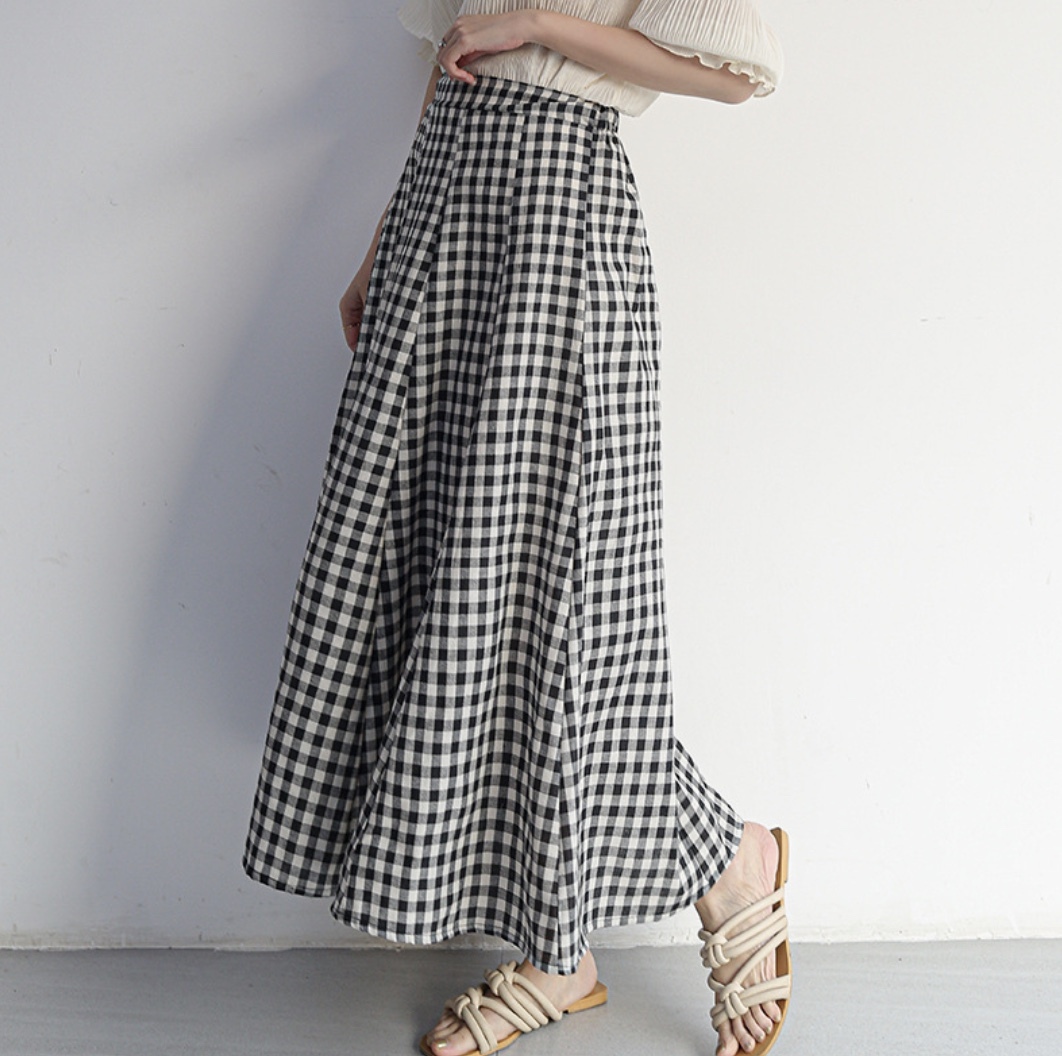- 新品レディーススカート ギンガムチェック柄 Aライン ロング マキシ丈 Sサイズ free140