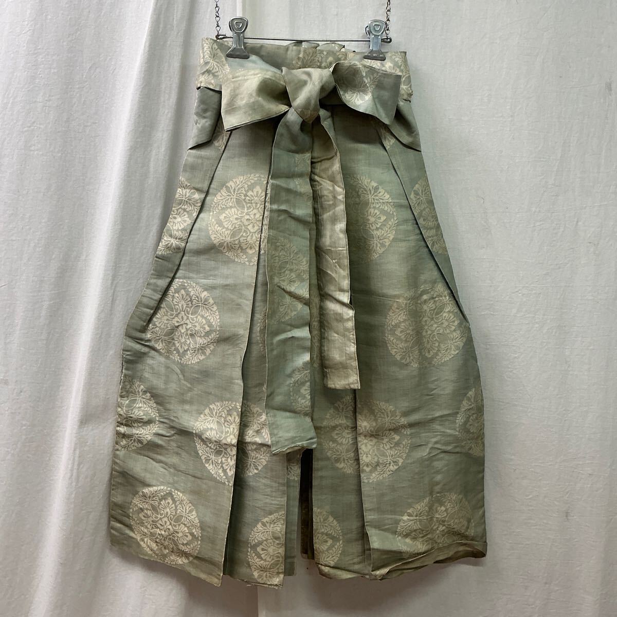 - 【A994】送無 古布 神道 袴 絹織物 水色 冬用 丸紋 下衣 法衣 法要 装束 着物 僧侶 お坊さん