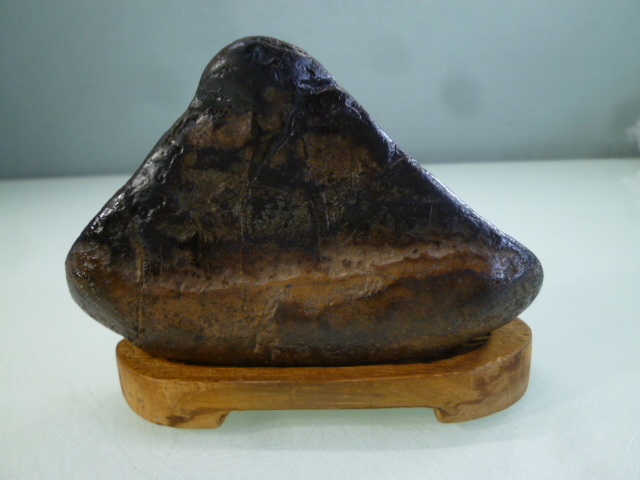 - 盆石 天然石 木台付 中古 昭和レトロアンティーク 自然 オブジェ 小ぶり三角