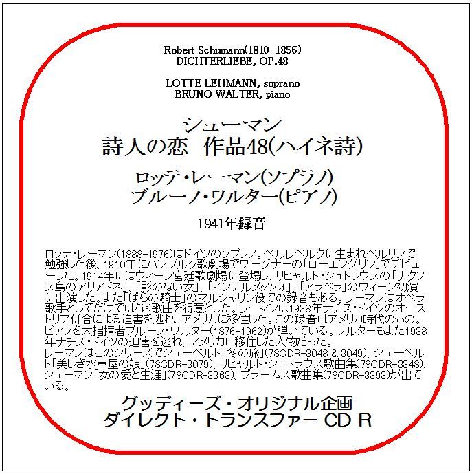 - シューマン:詩人の恋/ロッテ・レーマン/ダイレクト・トランスファー CD-R