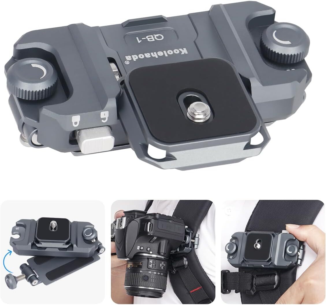 > 【新品】 Koolehaoda QB-1 カメラバックパックストラップクリップ カメラホルスター アルミ製カメラホルダー クイックリリースプレート