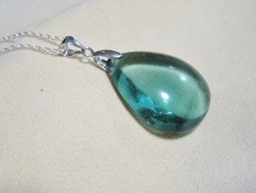 - ブルーグリーンフローライト【蛍石】の大粒の雫シルバーペンダント