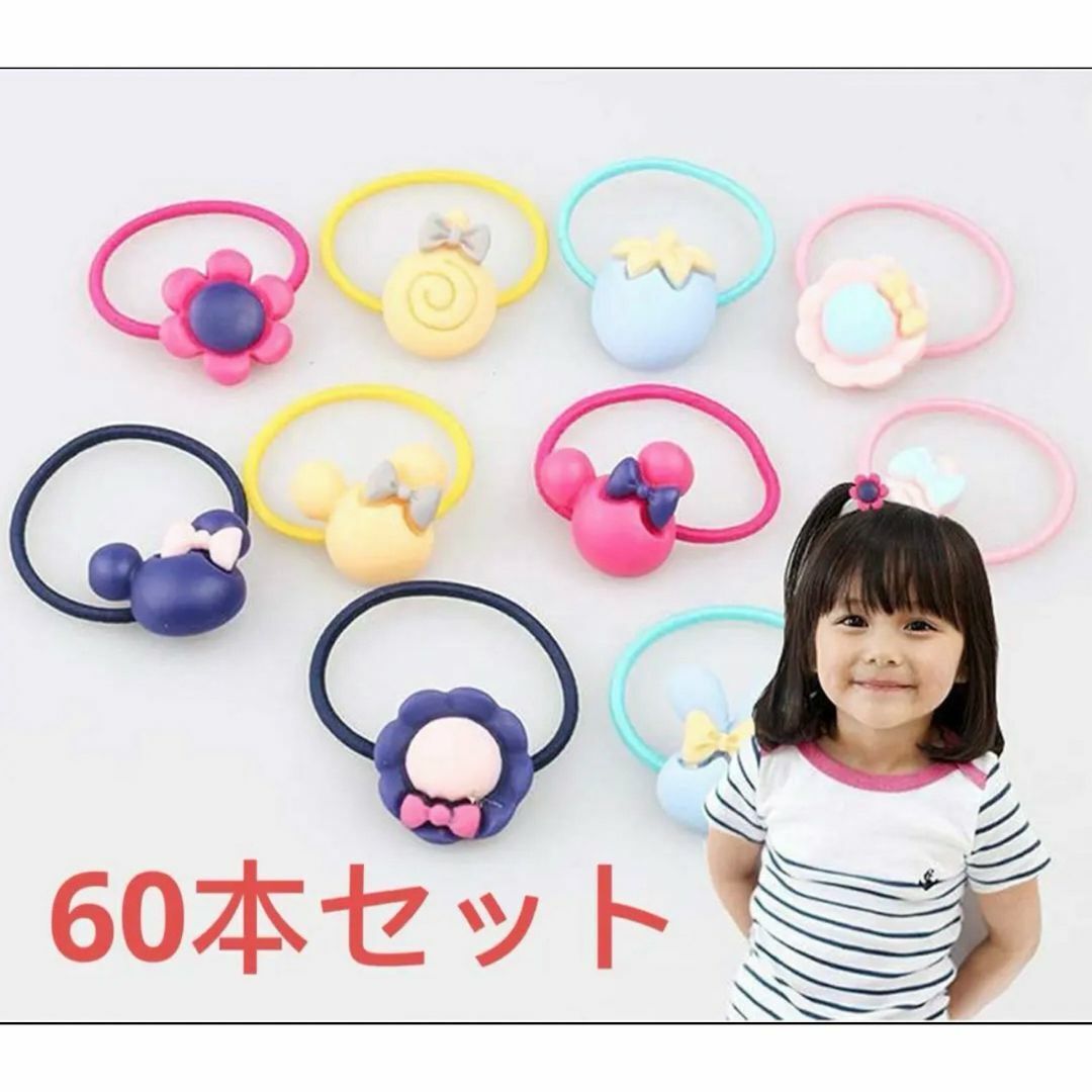 - こども ヘアゴム 子供用 髪ゴム 女の子 可愛い ヘアリングゴム 髪飾り60本