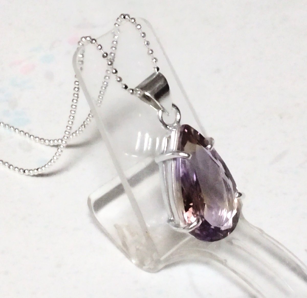 - ドロップ型エキゾチックな3AアメトリンのシルバーネックレスNO.6